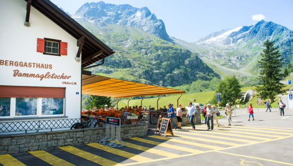 Geniessen Sie auf 1‘800 Metern über Meer die beeindruckende Alpenwelt – im Berggasthaus Dammagletscher. Eingebettet in eine imposante Gletscherwelt, umgeben von einer traumhaften Bergkulisse. Starten Sie von hier aus zu einer gemütlichen Wanderung rund um den Stausee oder zu einer anspruchsvolleren Bergtour. Das Berggasthaus ist der ideale Ausgangspunkt dafür. Mit heimeligen Zimmern und einer vielfältigen Küche. Auf der Sonnenterrasse können Sie den wunderschönen Tag ausklingen lassen.
