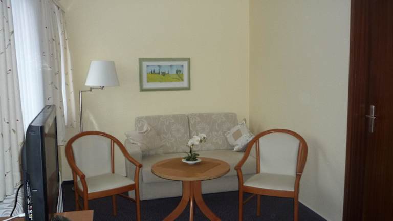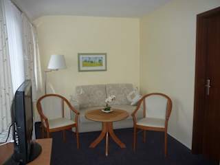 Nach einem erlebnisreichen Tag können Sie sich in Ihrem behaglichen Gästezimmer so richtig entspannen. Sie haben hier Platz für eine zusätzliche Aufbettung. Die geschackvolle Einrichtung und besonders die moderneKomfortausstattung mit Du/WC, Sat-TV, Minibar, Safe und Telefon lässt keine Wünsche offen.