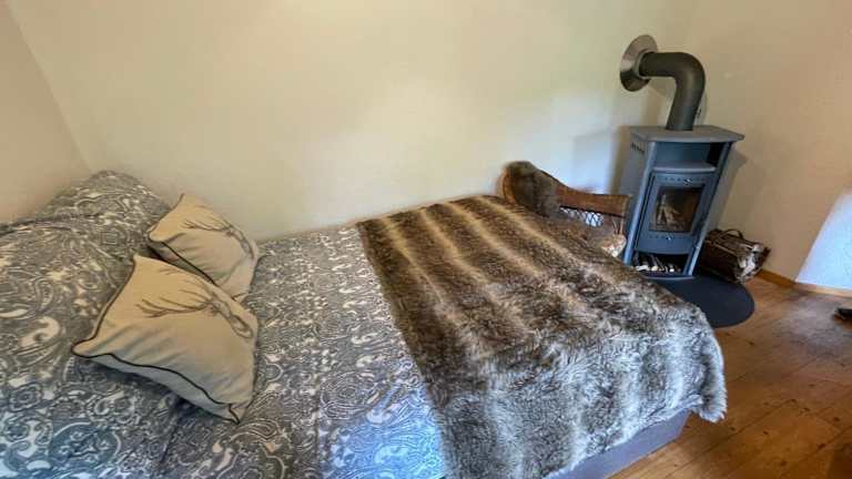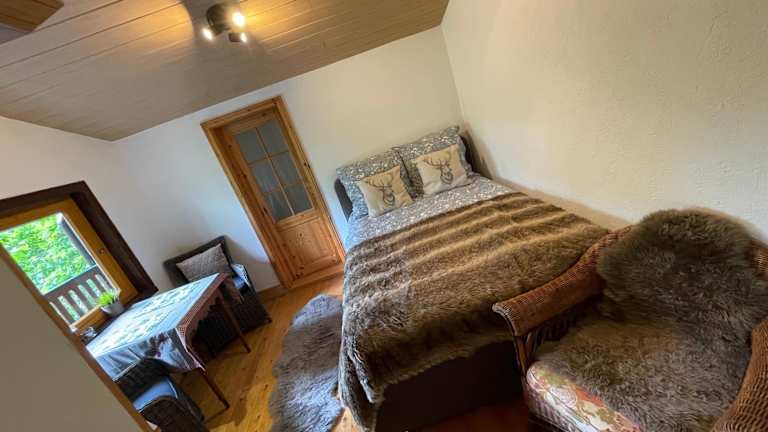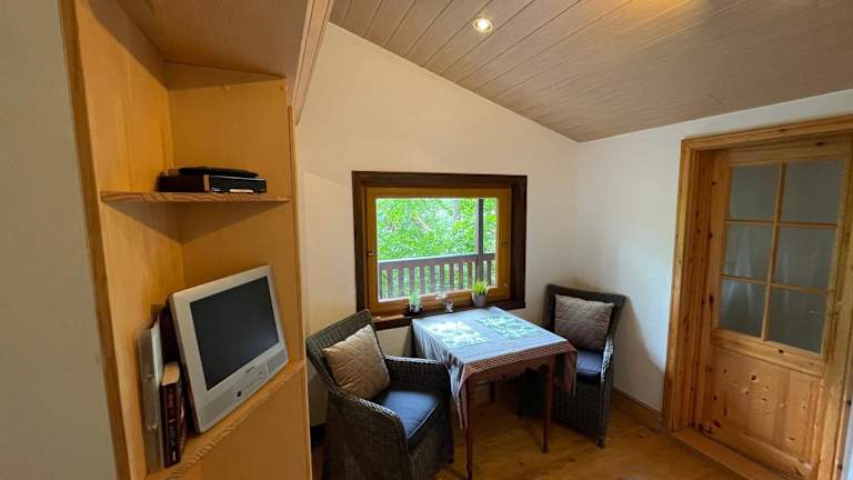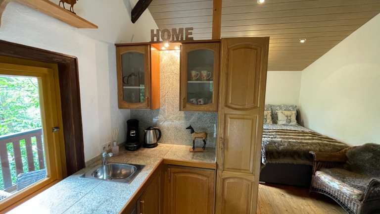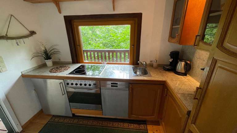 Die Ferienwohnung umfasst ein Schlafzimmer, ein Wohnzimmer und eine gut ausgestattete Küche. Zur Ausstattung gehört auch ein Flachbild-TV.