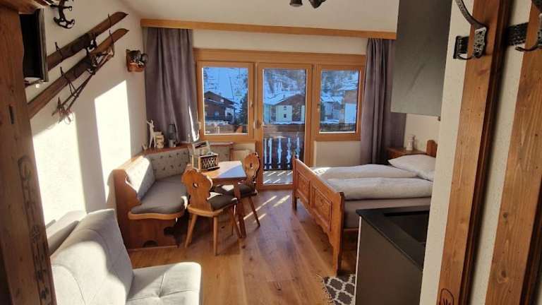 Vor Ort besteht die Möglichkeit, Ski zu fahren, und es ist ein Abstellraum für Skier vorhanden.