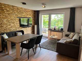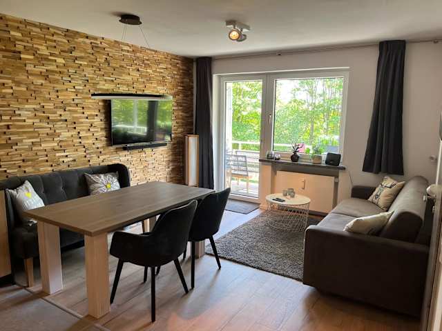 Die Ferienwohnung umfasst ein Schlafzimmer, ein Wohnzimmer und ist ausgestattet mit einem Flachbild-TV sowie einer gut ausgestatteten Küche, die einen Kühlschrank und einen Geschirrspüler beinhaltet. Ein Badezimmer mit Dusche ist ebenfalls vorhanden. Handtücher und Bettwäsche können gegen Aufpreis bereitgestellt werden. Alle öffentlichen und privaten Bereiche sind Nichtraucherzonen.