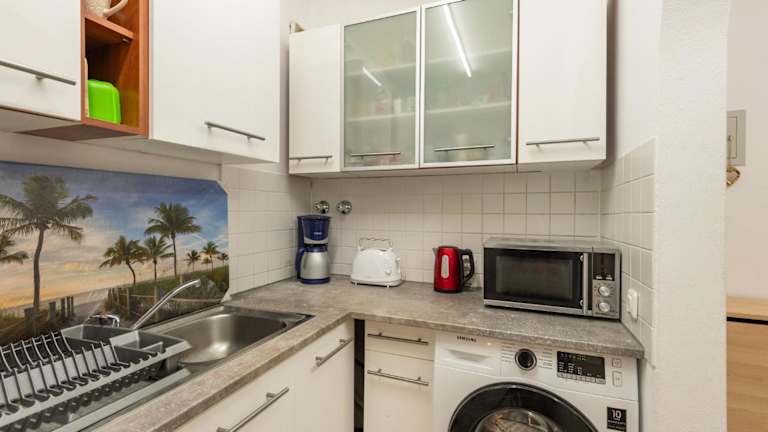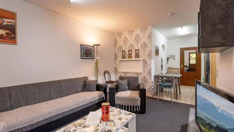 Die Ferienwohnung verfügt über ein Schlafzimmer, ein Wohnzimmer mit Flachbild-TV sowie eine gut ausgestattete Küche mit Kühlschrank und Ofen. Ein eigenes Badezimmer mit Badewanne ist ebenfalls vorhanden. Die Unterkunft besitzt außerdem einen Balkon mit Gartenblick und bietet Platz zur Entspannung in der gemeinschaftlichen Lounge.