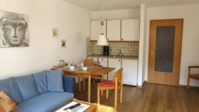 Die Ferienwohnung verfügt über ein Schlafzimmer, eine Küche mit einem Kühlschrank, einen Flachbild-TV, einen Sitzbereich sowie ein Badezimmer mit einer Dusche.
