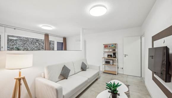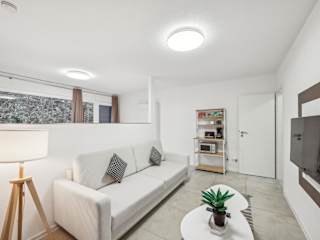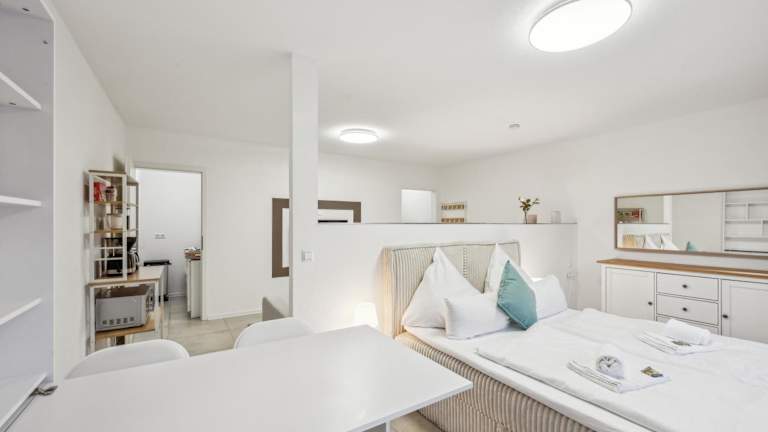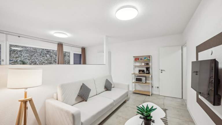Die Ferienwohnung verfügt über ein Schlafzimmer, einen Flachbild-TV, einen Essbereich sowie eine Küche mit einem Toaster. Ein Wohnzimmer ist ebenfalls vorhanden, und Handtücher sowie Bettwäsche werden bereitgestellt.