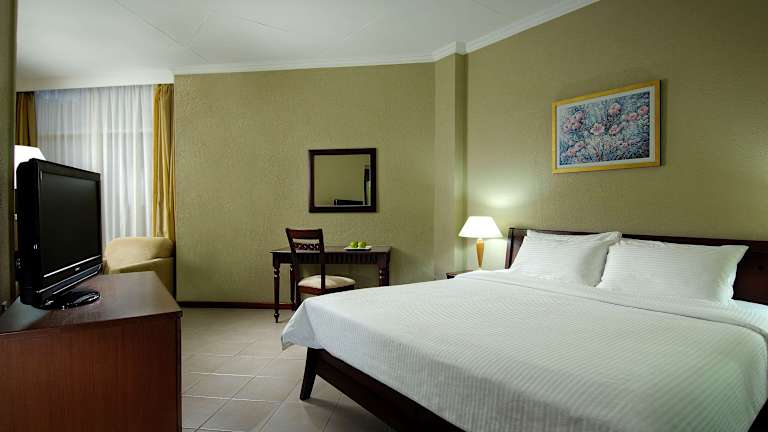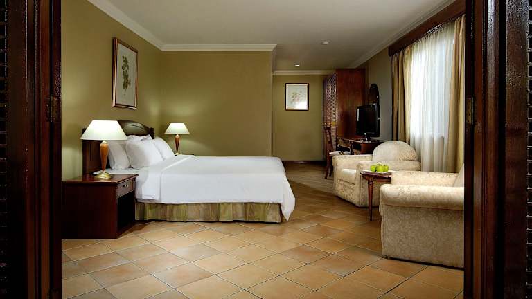 Die Hotelzimmer sind elegant eingerichtet und verfügen über eine Klimaanlage, einen TV, eine Minibar, einen Safe und ein Telefon. Die Bäder sind mit Föhn ausgestattet. Es stehen verschiedene Zimmertypen, einschließlich Standardzimmer, Familienzimmer und Deluxe-Zimmer, zur Verfügung. Einige Zimmer bieten Balkone oder Terrassen mit Sitzgelegenheiten.
