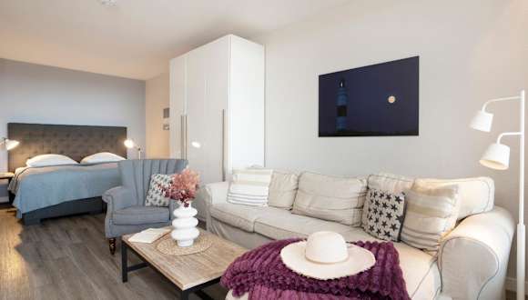 Die Ferienwohnung umfasst ein Schlafzimmer, ein Wohnzimmer und eine voll ausgestattete Küche, die mit einem Geschirrspüler und einem Wasserkocher ausgestattet ist. Ein Badezimmer mit Badewanne und Haartrockner sowie ein TV sind ebenfalls vorhanden.
