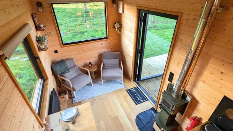 Das Chalet verfügt über ein Schlafzimmer und ist mit einer Küchenzeile ausgestattet, die einen Kühlschrank und eine Herdplatte umfasst. Darüber hinaus bietet es ein Badezimmer mit Dusche.