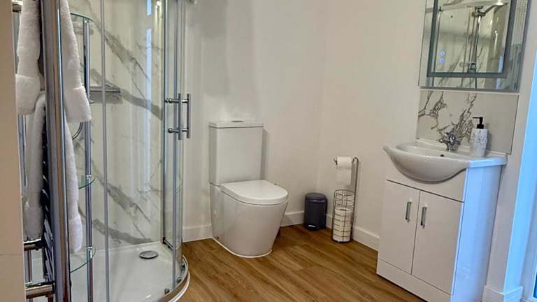 Das Ferienhaus verfügt über 1 Schlafzimmer, ein Wohnzimmer, eine voll ausgestattete Küchenzeile mit Kühlschrank und Kaffeemaschine sowie ein Badezimmer mit Dusche und kostenlosen Pflegeprodukten. Handtücher und Bettwäsche sind ebenfalls vorhanden.