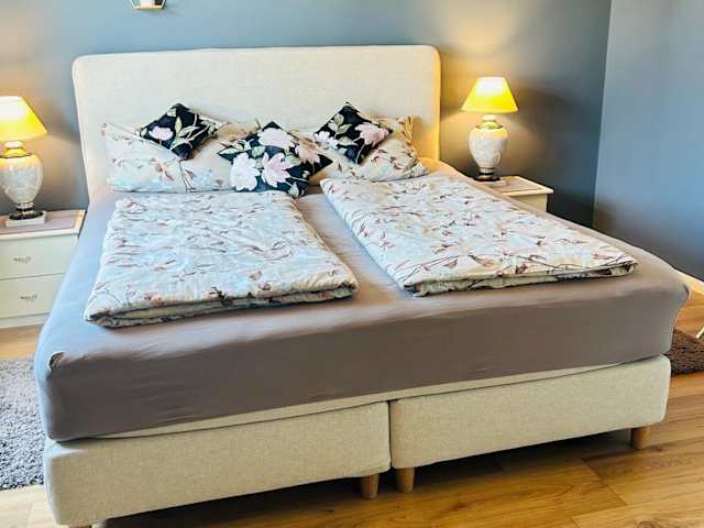 Die Ferienwohnung verfügt über ein Schlafzimmer, eine Küche mit Kühlschrank und Geschirrspüler, einen Flachbild-TV, einen Sitzbereich und ein Badezimmer mit Dusche. Handtücher und Bettwäsche werden bereitgestellt. Es gibt kostenfreies WLAN und einen kostenlosen Privatparkplatz.