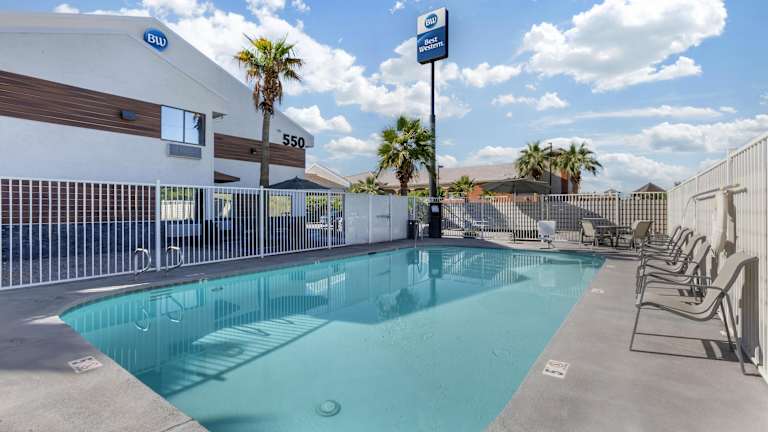 Das Best Western Blythe Hotel bietet eine komfortable Unterkunft in Blythe mit einem saisonalen Außenpool, einem Fitnesscenter und kostenfreiem WLAN. Genießen Sie täglich ein Frühstück zum Mitnehmen und erkunden Sie die Umgebung von Blythe, einschließlich des Joshua Tree Nationalparks. Das freundliche Personal und die Annehmlichkeiten wie eine 24-Stunden-Rezeption, Grillmöglichkeiten und kostenlose Parkplätze machen Ihren Aufenthalt angenehm und unkompliziert.