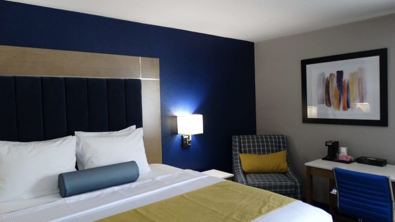 Die Zimmer im American Inn and Suites sind traditionell dekoriert und bieten den Gästen einen komfortablen Aufenthalt. Jedes Zimmer verfügt über Kabel-TV, so dass Sie Ihre Lieblingssendungen genießen können, sowie Tee- und Kaffeezubehör für eine Tasse Kaffee oder Tee am Morgen.
