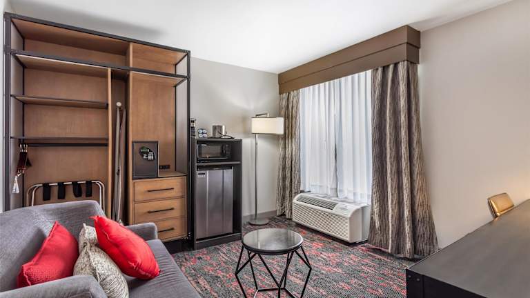 Die Zimmer im Best Western PLUS Downtown/Music Row sind geräumig und im urbanen Design gestaltet. Sie verfügen über individuell regulierbare Klimaanlagen, Heizungen und einen Schreibtisch. Zur Ausstattung gehören auch ein Safe, ein Kühlschrank, eine Mikrowelle, ein Kaffee- und Teezubereiter, ein Telefon und kostenfreies WLAN. Die Zimmer bieten entweder zwei Queensize-Betten oder ein Kingsize-Bett.