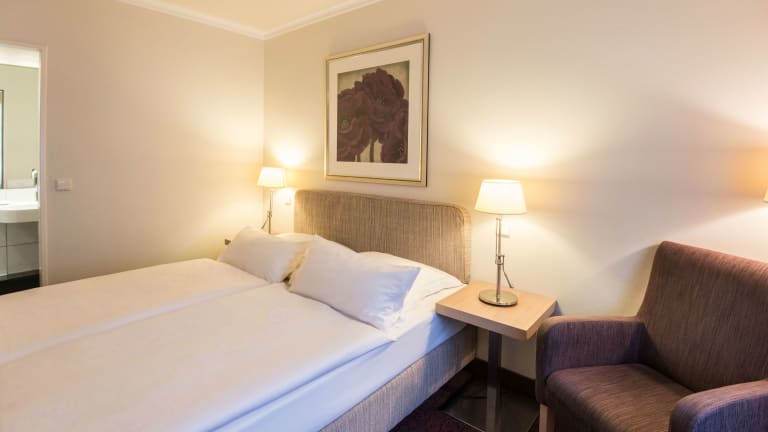 Exclusiv-Zimmer: Helle großzügige Zimmer mit extragroßen Betten, Sofaecke und Badewanne. Alle Zimmer verfügen über Bad/WC, Kabel-TV, Sky (kostefrei), Radio, Telefon, Haartrockner, Schreibtisch, Kaffee- und Teezubereitungsmöglichkeit und kostenfreies WLAN. Zusätzlich sind die Zimmer dieser Kategorie mit Bidet und Hosenbügler ausgestattet. Comfort-Zimmer: Geräumige Doppelzimmer mit wohnlicher Einrichtung und komfortabler Ausstattung. Alle Zimmer verfügen über Dusche/WC, Kabel-TV, Sky (kostenfrei), Radio, Telefon, Haartrockner, Schreibtisch, Kaffee- und Teezubereitungsmöglichkeit und kostenfreies WLAN. Zweibett-Zimmer: Ruhige, im Innenhof gelegene Zimmer mit getrennt stehenden Betten. Alle Zimmer verfügen über Dusche/WC, Kabel-TV, Sky (kostenfrei), Radio, Haartrockner, Telefon, Schreibtisch, Kaffee- und Teezubereitungsmöglichkeit und kostenfreies WLAN.