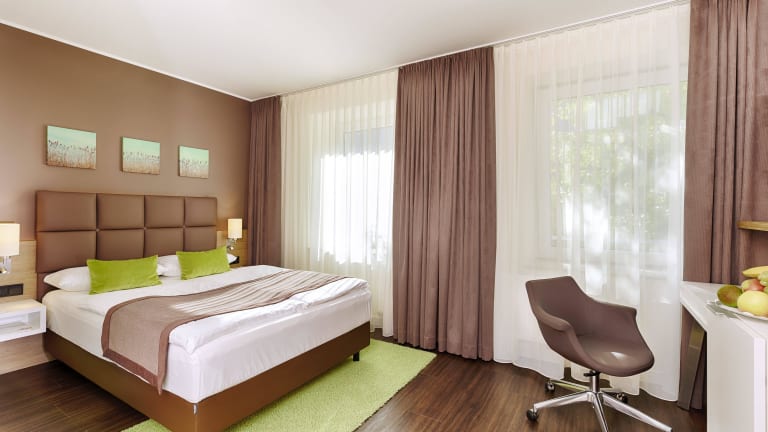 Alle Zimmer sind modern und in einer freundlichen Farbgestaltung eingerichtet. Neben den Hotelzimmern der Kategorie "Economy" empfehlen wir Ihnen die großzügig geschnitteneren "Standard"- und "Komfort"-Kategorien oder eine unserer Juniorsuiten. Die Hohenzollern Suite verfügt neben einem Schlafraum und 2 Badezimmern ebenso über einen separaten Wohnraum.
