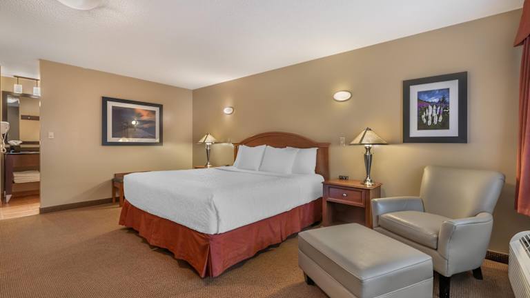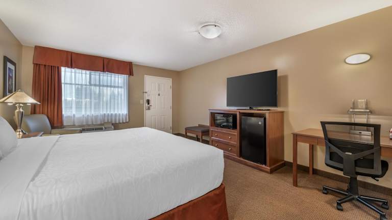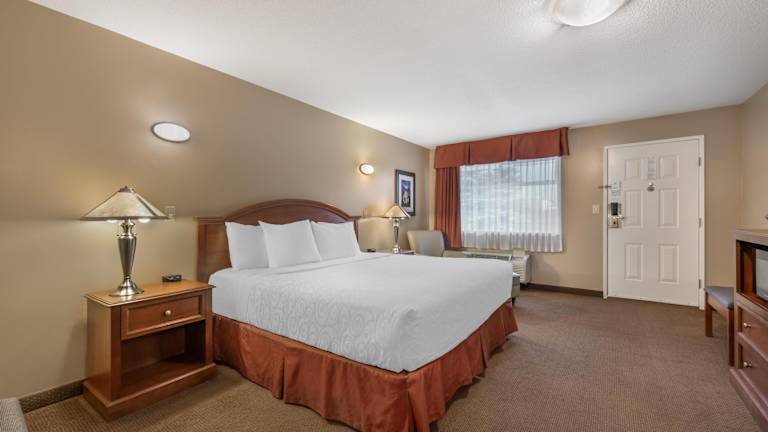 Das Best Western Sicamous Inn verfügt über 65 Zimmer, die über einen Aufzug erreichbar sind. Die Zimmer sind komfortabel eingerichtet und bieten Annehmlichkeiten wie einen Flachbild-TV, einen Schreibtisch, eine Mikrowelle und einen kleinen Kühlschrank. Es gibt auch rollstuhlgerechte Einrichtungen für Gäste mit besonderen Bedürfnissen.