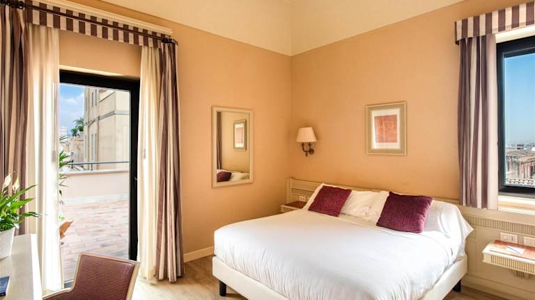 Das Hotel bietet 104 Zimmer, darunter Junior-Suiten, Suiten, Einzel- und Doppelzimmer, die alle individuell eingerichtet sind. Die Zimmer sind klimatisiert und verfügen über einen Balkon oder ein Fenster. Zur Ausstattung gehören kostenfreies WLAN, ein TV mit kostenlosen Mediaset Premium-Kanälen, eine Minibar und ein Safe. Einige Zimmer auf der 4. Etage bieten einen herrlichen Blick auf die Stadt.