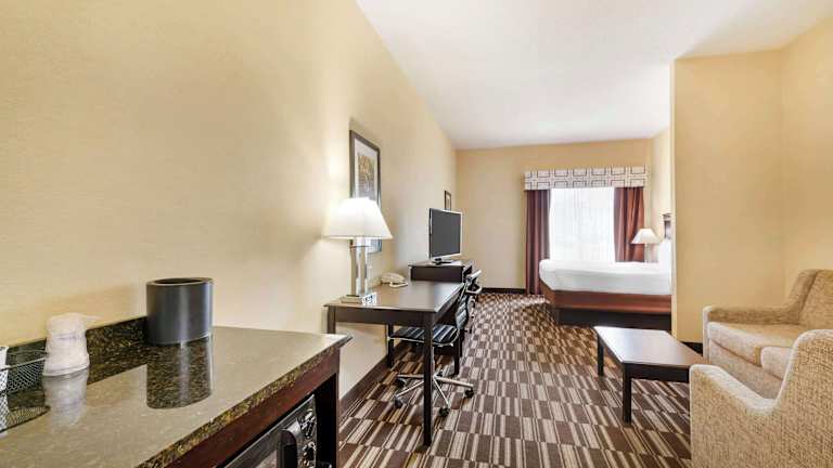 Die Zimmer im Best Western PLUS Victor Inn & Suites sind modern und komfortabel ausgestattet. Jedes Zimmer verfügt über kostenfreies WLAN, einen 32-Zoll-Flachbild-TV, einen großen Schreibtisch und einen gemütlichen Sitzbereich. Ein Kühlschrank und eine Mikrowelle sind ebenfalls in jedem Zimmer vorhanden, um Ihren Aufenthalt so angenehm wie möglich zu gestalten.