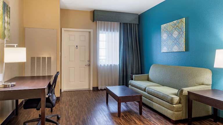 Das Best Western Plus Galveston Suites verfügt über 96 Zimmer auf 5 Etagen, die bequem mit dem Aufzug erreichbar sind. Die Zimmer sind modern und komfortabel eingerichtet und bieten Annehmlichkeiten wie einen Safe, einen Kühlschrank, eine Mikrowelle und eine Tee-/Kaffeemaschine. Einige Zimmer verfügen über einen Balkon oder eine Terrasse mit Meerblick.