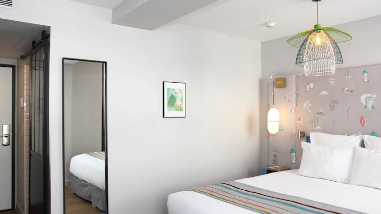 Die Zimmer des Hôtel Littéraire Marcel Aymé haben nicht nur eine Nummer, sondern tragen auch den Namen eines Romans, einer Kurzgeschichte oder eines engen Freundes von Marcel Aymé, wie La Jument verte, Le Passe-muraille und Jean Anouilh. Sie sind mit einem Aquarell von Jean Aubertin personalisiert, die jeweils eigens kreiert wurden, zusammen mit einem Text und Zitaten von Marcel Aymé, um Lust auf mehr zu machen. Einige Fotos der besten Fotografen der damaligen Zeit wie Izis lassen Sie in die Atmosphäre von Montmartre zu dieser Zeit eintauchen.