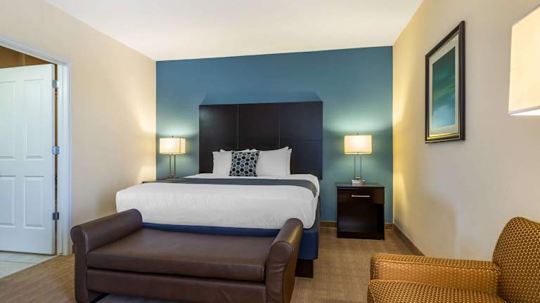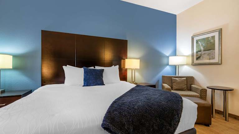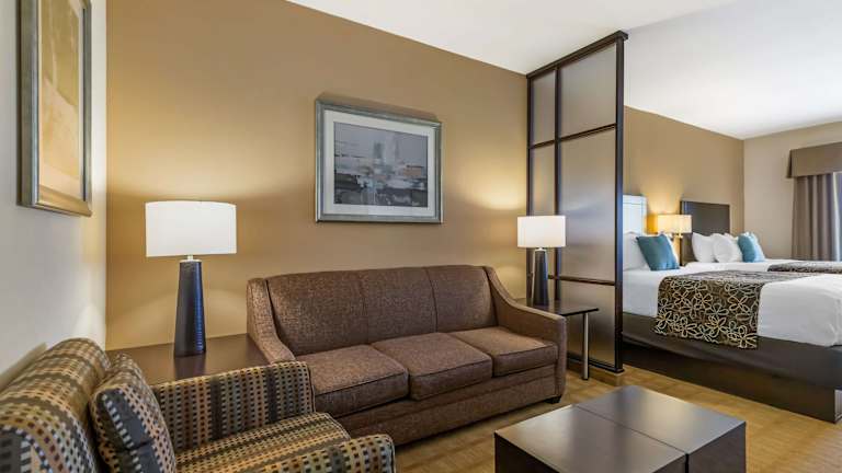 Das Best Western Plus Lytle Inn and Suites bietet komfortable Zimmer mit allen Annehmlichkeiten, die Sie für einen angenehmen Aufenthalt benötigen. Jedes Zimmer verfügt über eine Mikrowelle und einen Kühlschrank, sodass Sie Ihre eigenen Snacks und Getränke mitbringen können. Kabel-TV und ein Haartrockner sind ebenfalls vorhanden. WLAN nutzen Sie in allen Zimmern kostenfrei, damit Sie immer mit der Welt verbunden bleiben können. Kaffee- und Teezubehör steht Ihnen ebenfalls zur Verfügung, damit Sie sich jederzeit eine Tasse Kaffee oder Tee zubereiten können.