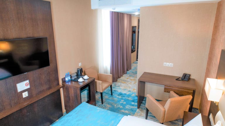 Das Best Western Plus Oskemen bietet komfortable und klimatisierte Zimmer für einen angenehmen Aufenthalt. Einige der Zimmer verfügen über eine Kitchenette mit Kühlschrank, Mikrowelle und Minibar, so dass Sie sich Ihre eigenen Mahlzeiten zubereiten können.