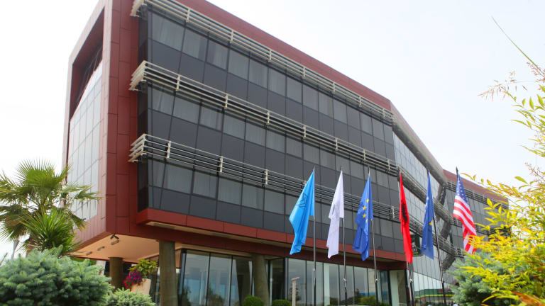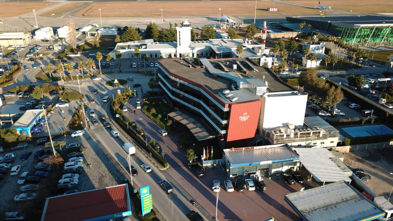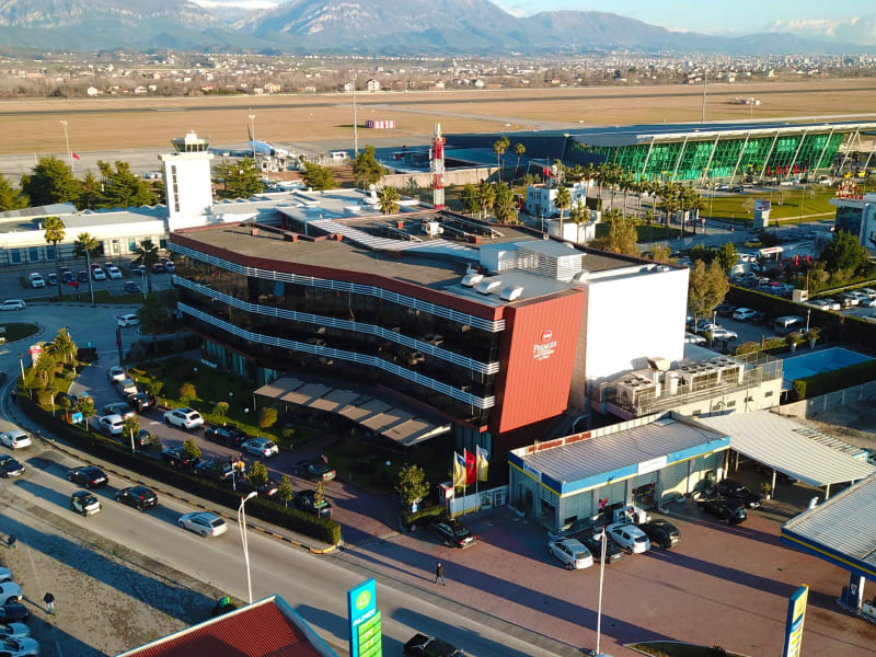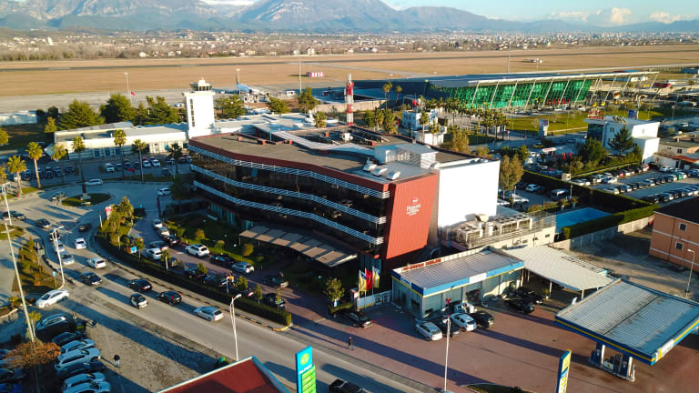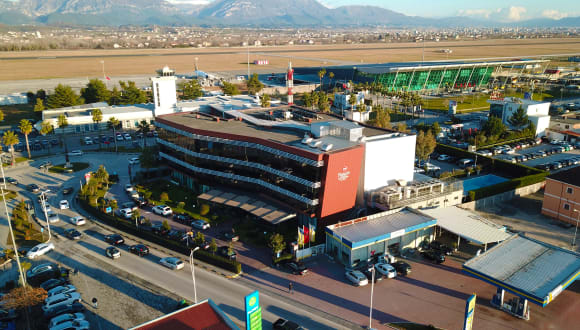 In front of Tirana International Airport , 3 minutes walk away