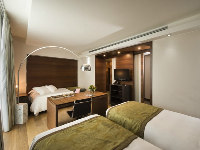 Nächtigen Sie in einem der bequem eingerichteten Wohneinheiten (Familienzimmer und Hochzeitssuite) dieses Hotels. An jedem Zimmer ist ein Badezimmer angeschlossen. Im Badezimmer finden Sie: Badewanne oder Dusche, Bademantel, Haartrockner, Toilettenartikel und Hausschuhe. Ein komfortabler Sitzbereich bietet Ihnen die Möglichkeit, abzuschalten. Die Ausstattung der Wohneinheiten beinhaltet eine Minibar, einen Safe sowie einen Schreibtisch. Es erwartet Sie eine Kaffeemaschine. Das Zimmerinventar beinhaltet ein Telefon, ein Radio sowie einen Fernseher. Im Buchungsumfang ist ein kostenfreies Mineralwasser als Aufmerksamkeit des Hotelteams inkludiert. Zusätzlich sind behindertenfreundliche Zimmer, Allergikerzimmer und schallisolierte Zimmer erhältlich.