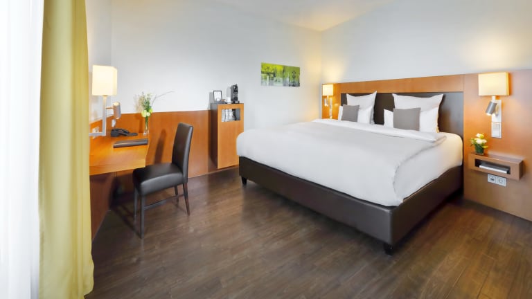 Classic - Zimmerkategorie Unsere Zimmer zeichnen sich durch einen geradlinigen und modernen Stil aus, der Sie zum Wohlfühlen einlädt. Dabei legen wir sehr viel Wert auf Komfort und Funktionalität. Unsere Classic-Zimmer verfügen über jeweils 23 qm. Alle Classic-Zimmer sind ausgestattet mit Dusche oder Badewanne, Fön, Kosmetikspiegel, Bademantel und Slipper, Schreibtisch, mehrsprachige TV- & diverse Sky-Programme, Telefon, kostenfreies WLAN, individuell regulierbare Klimaanlage, Zimmersafe, Kaffee- und Teestation, Minibar Business - Zimmerkategorie Unsere Zimmer der Business-Kategorie mit 25 qm liegen zusätzlich zum Innenhof und garantieren Ihnen eine ruhige Atmosphäre. Der Aufpreis beträgt € 20,00 je Zimmer/Nacht. Alle Business-Zimmer sind ausgestattet mit Dusche/Badewanne, Fön, Kosmetikspiegel, Bademantel und Slipper, Schreibtisch, mehrsprachige TV- & diverse Sky-Programme, Telefon, kostenfreies WLAN, individuell regulierbare Klimaanlage, Zimmersafe mit Steckdose zum Aufladen elektr. Geräte, Kaffee- und Teestation, Minibar, Bügelstation Deluxe - Zimmerkategorie Unsere Zimmer der Deluxe-Kategorie mit 33 qm garantieren Ihnen komfort. Der Aufpreis beträgt € 40,00 je Zimmer/Nacht. Alle Deluxe-Zimmer sind ausgestattet mit Dusche/Badewanne, Fön, Kosmetikspiegel, Bademantel und Slipper, Schreibtisch, mehrsprachige TV- & diverse Sky-Programme, Telefon, kostenfreies WLAN, individuell regulierbare Klimaanlage, Zimmersafe mit Steckdose zum Aufladen elektr. Geräte, Kaffee- und Teestation, Minibar, Bügelstation. Eine IPhone Dockingstation gehört zur Ausstattung. Barrierefreie Zimmer Unsere barrierefreien Zimmer verfügen über alle Features wie unsere Deluxe Zimmer auch. Sie sind ebenerdig gebaut und mit Twin Betten möbliert. Zusätzlich finden Sie eine Dusche und Waschbecken - beides behindertengerecht, WC mit Haltegriffen und ein Notrufsystem vor.