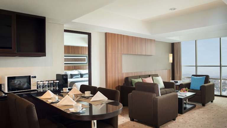 Die 193 Zimmer des Hotels sind gemütlich und komfortabel eingerichtet. Sie verfügen über eine Klimaanlage, ein Wohnzimmer und ein eigenes Badezimmer. Zur Ausstattung gehören auch ein Schreibtisch, eine Minibar und kostenfreies WLAN. Einige Zimmer bieten zudem eine Mikrowelle und eine Tee-/Kaffeemaschine.