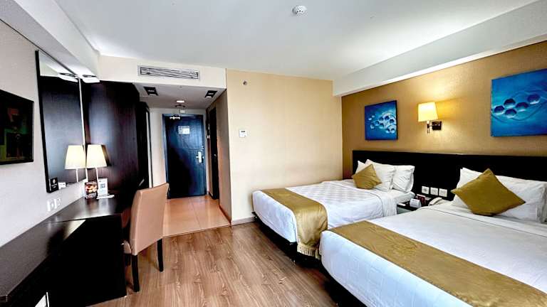 Die Zimmer im Hotel verfügen über eine Klimaanlage, ein Doppelbett, einen Safe, eine Minibar und einen Schreibtisch. Zur Ausstattung gehören auch Kühlschrank, Mikrowelle und Tee-/Kaffeemaschine. Jedes Zimmer bietet einen LED-TV sowie WLAN, das kostenfrei ist. Die Badezimmer sind mit einer Regendusche, einem Haartrockner und kostenlosen Pflegeprodukten ausgestattet. Es gibt sowohl Nichtraucher- als auch Familienzimmer, und einige Zimmer sind barrierefrei.