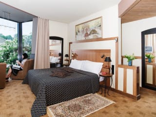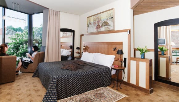 Die geräumigen Zimmer des Hotels sind klassisch gestaltet und verfügen über helle, pastellfarbene Wände und Holzmöbel. Jedes Zimmer ist mit einem Kühlschrank ausgestattet und die meisten Zimmer bieten einen separaten Sitzbereich. Zur Ausstattung gehören auch ein Kabel-TV und kostenloses WLAN.