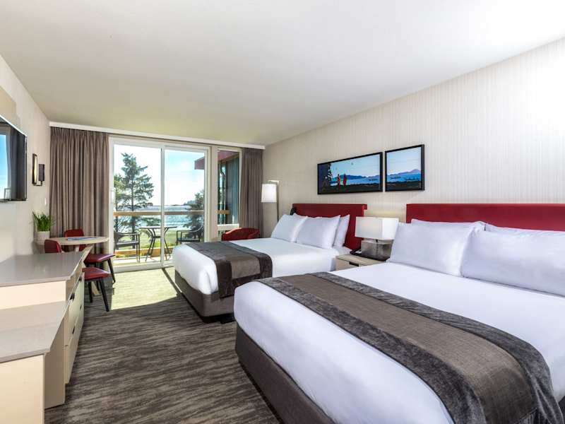 Alle 85 Zimmer im Best Western Plus Tin Wis Resort bieten einen atemberaubenden Blick auf das Wasser. Die Zimmer sind Nichtraucherzimmer und verfügen über ein Kingsize-Bett, einen Sitzbereich mit Schlafsofa, einen Kühlschrank, Tee- und Kaffeezubehör, einen Flachbildfernseher, WLAN und ein eigenes Badezimmer mit Badewanne oder Dusche.