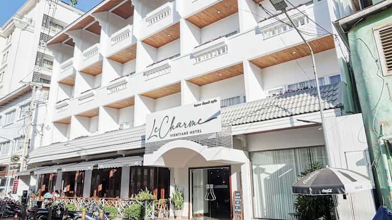 Das Le Charme Vientiane Hotel im Herzen von Vientiane bietet seinen Gästen einen komfortablen Aufenthalt mit kostenfreiem WLAN, einem Außenpool und einer 24-Stunden-Rezeption. Die Zimmer sind stilvoll eingerichtet und verfügen über Annehmlichkeiten wie Sat-TV, Klimaanlage und einen Kühlschrank. Das Hotel bietet außerdem einen Fitnessraum, einen Wäscheservice und eine Gepäckaufbewahrung. Genießen Sie ein amerikanisches Frühstück im Restaurant und erfrischende Cocktails in der Lounge. Das Hotel liegt nur eine kurze Fahrt vom internationalen Flughafen Wattay und vielen Sehenswürdigkeiten entfernt.