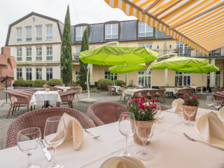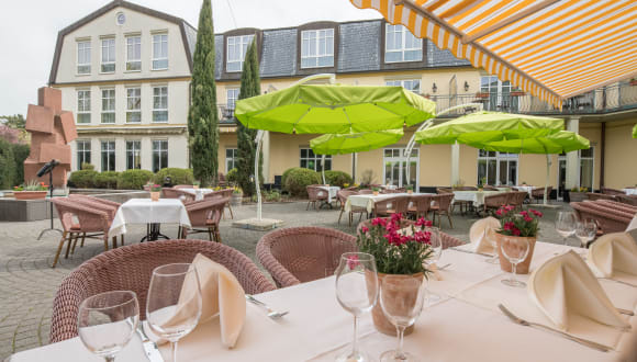 Das Restaurant Am Heylschen Garten (Gartenterrasse mit 80 Plätzen)verwöhnt mit typischer regionaler Küche, die zu den fabelhaften Weinen der Region besonders gut passt. Und für alle, die es ein bißchen internationaler mögen, gibt es ebenfalls eine stets frische Auswahl.