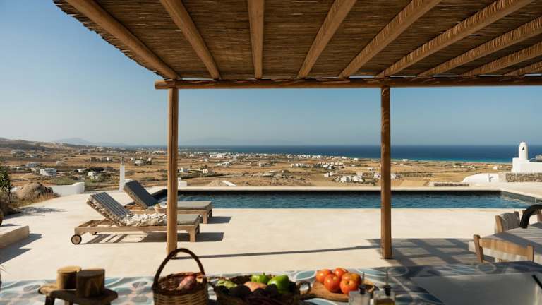 Beyond Naxos-Exclusive vacation home bietet eine exklusive Ferienunterkunft mit einem saisonalen Außenpool, einem Garten und einer Terrasse. Diese Unterkunft ermöglicht den Zugang zu einem eigenen Pool und bietet kostenloses WLAN sowie Meerblick.