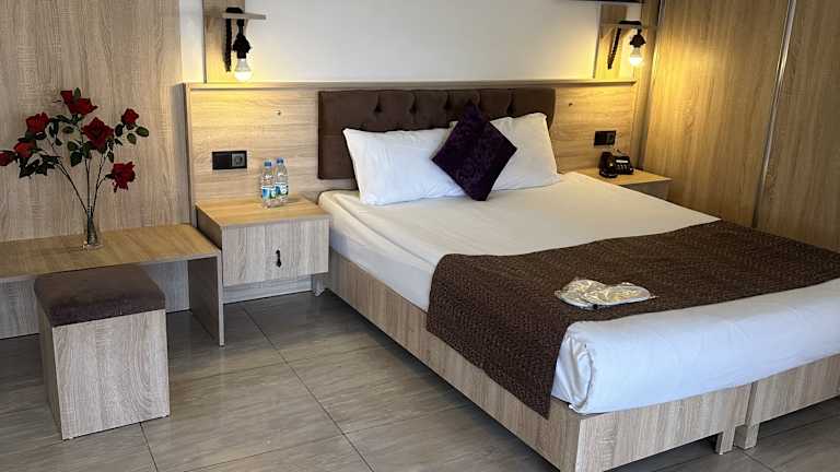 Die Zimmer sind mit Klimaanlage, Heizung, einem Doppelbett, einer Minibar, einem Schreibtisch und einem Badezimmer mit Dusche ausgestattet. Viele Zimmer bieten einen Meerblick. Alle Zimmer verfügen über Sat-TV, WIFI und Hausschuhe. Es gibt sowohl Familienzimmer als auch Nichtraucherzimmer.