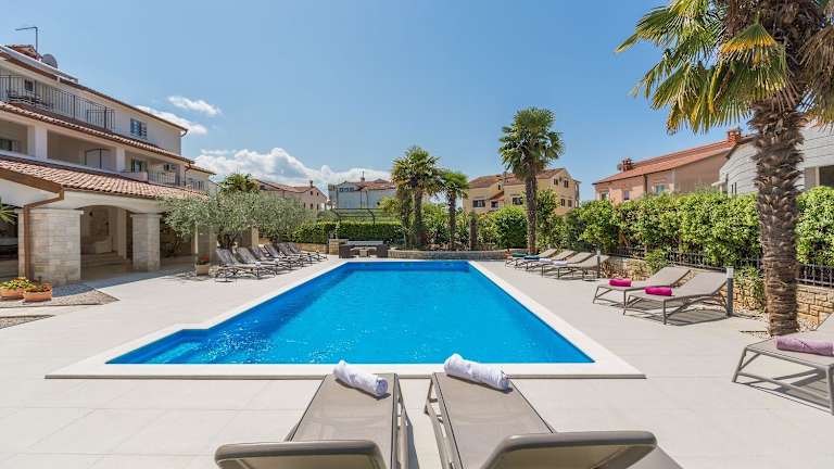 Die Unterkunft befindet sich in Poreč, direkt am Strand, nur 800 Meter von den nächsten Stränden entfernt. In der Umgebung liegen der Strand Laguna sowie der Strand Materada, beide 1,7 km entfernt. Die Stadt Rovinj mit der Kirche der heiligen Euphemia ist 43 km entfernt.
