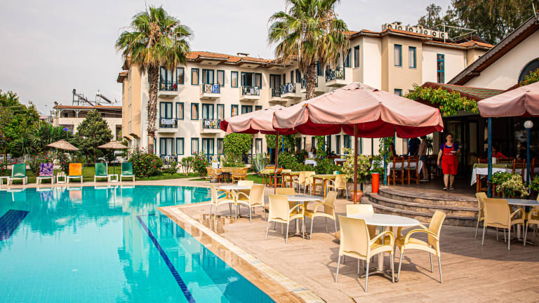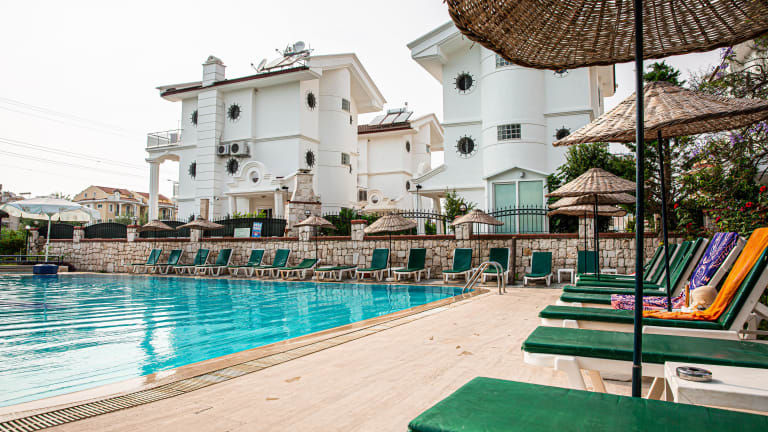 Das Hotel befindet sich in zentraler Lage in Fethiye, direkt am Sandstrand.