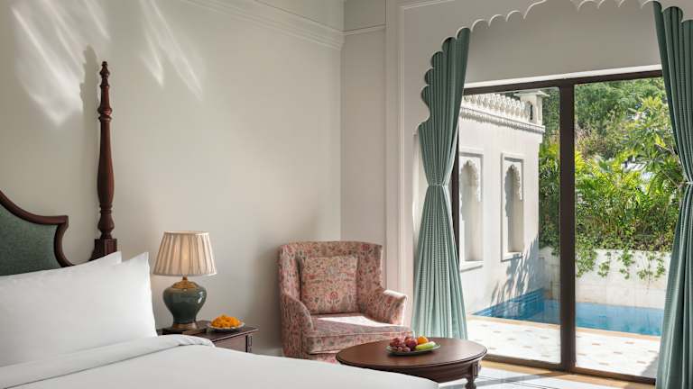Das Bhairavgarh Palace Udaipur verfügt über 42 Zimmer, die als Super Deluxe, Grand Suite und Hochzeitssuite klassifiziert sind. Jedes Zimmer ist geschmackvoll eingerichtet und bietet eine gelungene Mischung aus traditionellem Rajasthani-Stil und modernem Design. Die Zimmer sind mit allen notwendigen Annehmlichkeiten ausgestattet, um Ihren Aufenthalt angenehm und komfortabel zu gestalten. Zu den weiteren Annehmlichkeiten gehören ein Kleiderschrank, ein Schreibtisch, Tee- und Kaffeezubehör, ein Bügelbrett und eine gut ausgestattete Minibar.