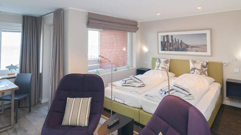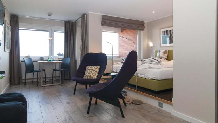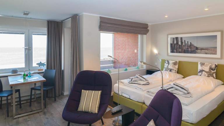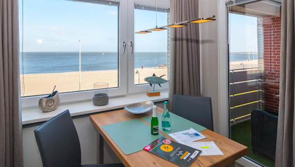 Das Apartment im bi Strön ist komfortabel und modern eingerichtet und bietet Ihnen eine gemütliche Atmosphäre für Ihren Aufenthalt. Das Wohnzimmer ist der ideale Ort, um sich nach einem Tag am Strand zu entspannen und Sat-TV sorgt für Unterhaltung. Die voll ausgestattete Küche ermöglicht es Ihnen, Ihre eigenen Mahlzeiten zuzubereiten und bietet alle notwendigen Annehmlichkeiten wie einen Kühlschrank und einen Geschirrspüler. Der Balkon bietet Ihnen die Möglichkeit, die frische Meeresluft zu genießen und den Meerblick zu bewundern. Kostenloses WLAN ist ebenfalls verfügbar, so dass Sie mit Ihren Lieben zu Hause in Kontakt bleiben können.