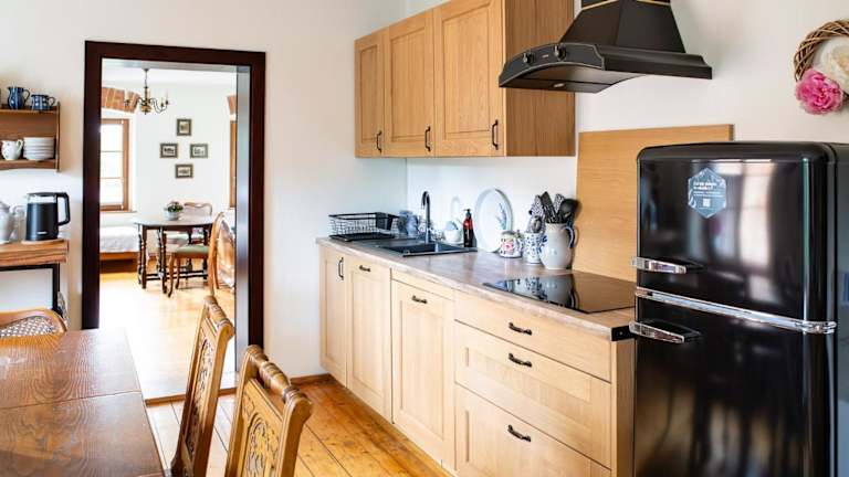 Das Biała Kalina Kaczawy bietet eine Gemeinschaftsküche, in der Sie Ihre eigenen Mahlzeiten zubereiten können. Es gibt auch Grillmöglichkeiten im Freien, so dass Sie bei schönem Wetter grillen können. In der Umgebung gibt es auch einige Restaurants, in denen Sie lokale Spezialitäten genießen können.