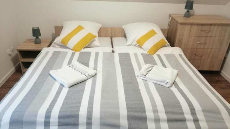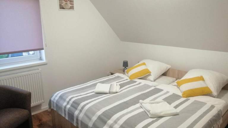 Das Ferienhaus Biały Dom bietet 5 geräumige Schlafzimmer, in denen Sie sich nach einem ereignisreichen Tag entspannen können. Die voll ausgestattete Küche ermöglicht es Ihnen, Ihre eigenen Mahlzeiten zuzubereiten und sich wie zu Hause zu fühlen. Es gibt auch 2 Badezimmer für Ihren Komfort. Ein Flachbild-TV ist ebenfalls vorhanden, damit Sie Ihre Lieblingssendungen nicht verpassen.