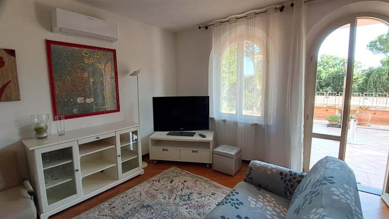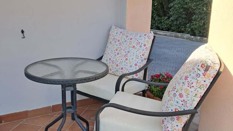 Die Ferienwohnung umfasst zwei Schlafzimmer, ein Wohnzimmer und eine voll ausgestattete Küche mit Kühlschrank und Kaffeemaschine. Zudem stehen zwei Badezimmer mit Bidet und Dusche zur Verfügung.