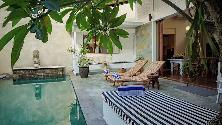 Das Hotel befindet sich in Seminyak, etwa 200 m vom Strand entfernt, in zentraler Lage. In der Nähe liegen der Batu Belig Beach und der Masceti Temple. Der Flughafen Ngurah Rai ist 11 km entfernt.