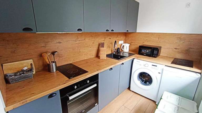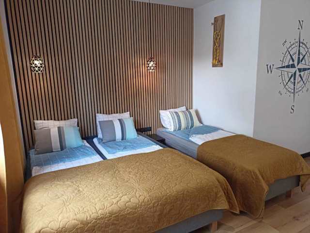 Die Big Blue Apartments nr 6 - 3 osobowy bieten eine gemütliche Ferienwohnung mit modernen Annehmlichkeiten. Zur Ausstattung gehören kostenlose Fahrräder, ein Garten sowie ein kostenloser Shuttle-Service. Zudem stehen den Gästen ein kostenloser Privatparkplatz und eine Gemeinschaftsküche zur Verfügung.