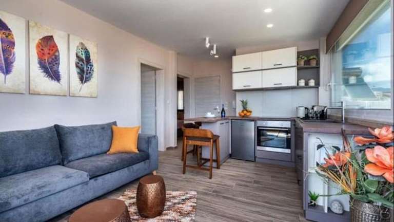 Die klimatisierten Unterkünfte im Big Blue Suites 2 bieten Komfort und Gemütlichkeit. Das Apartment verfügt über 2 Schlafzimmer und 1 Badezimmer. Die Zimmer sind mit Bettwäsche und Handtüchern ausgestattet. Zur weiteren Ausstattung gehören ein Flachbild-Sat-TV und eine voll ausgestattete Küche, so dass Gäste ihre eigenen Mahlzeiten zubereiten können. Ein Balkon und eine Terrasse bieten einen herrlichen Ausblick auf das Meer, die Berge und die Stadt. Kostenloses WLAN steht den Gästen zur Verfügung.