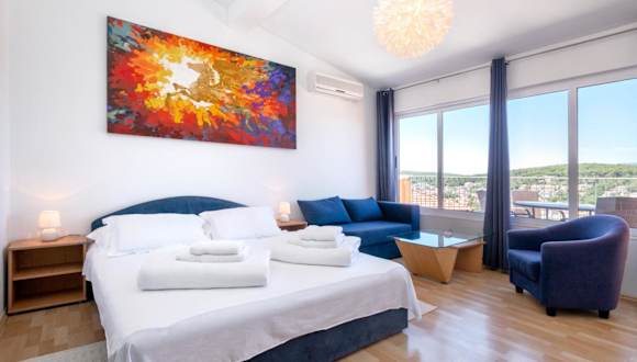 Das Big Blue Hotel befindet sich in Jelsa auf der Insel Hvar. Die Strände Mina und Fontana sind in der Nähe und laden zum Entspannen und Sonnenbaden ein. Die Umgebung des Hotels eignet sich auch hervorragend zum Wandern und bietet Ihnen die Möglichkeit, die atemberaubende Natur der Insel zu erkunden. Der Strand Camp Holiday ist nur 1,4 km entfernt und der Stephansdom in Hvar ist in einer Entfernung von 30 km erreichbar. Der nächstgelegene Flughafen ist der Flughafen Split, der 76 km vom Hotel entfernt ist.