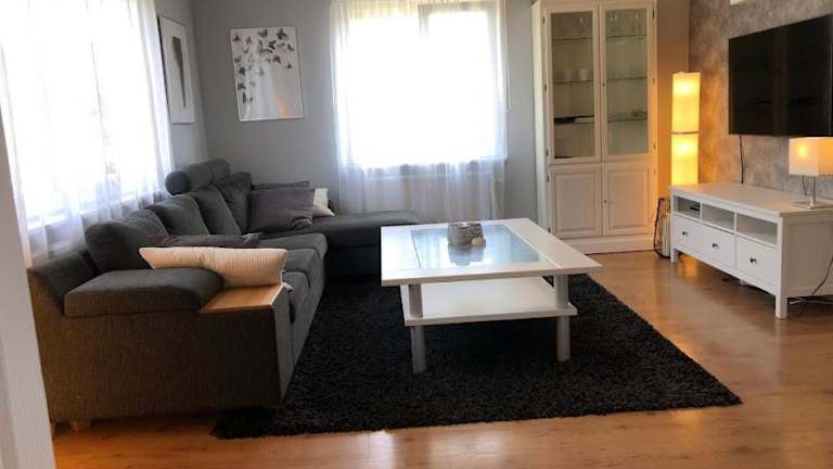 Das geräumige Big House mit Sauna bietet Platz für bis zu 6 Personen und verfügt über 3 Schlafzimmer, ein Wohnzimmer und 2 Badezimmer. Das Haus ist geschmackvoll eingerichtet und verfügt über eine voll ausgestattete Küche mit Kühlschrank und Geschirrspüler. Genießen Sie die entspannende Atmosphäre im Wohnzimmer mit Flachbild-TV oder gönnen Sie sich eine Auszeit in der Sauna. Von der Terrasse aus haben Sie einen schönen Blick auf den Garten. Kostenloses Wi-Fi ist ebenfalls verfügbar.