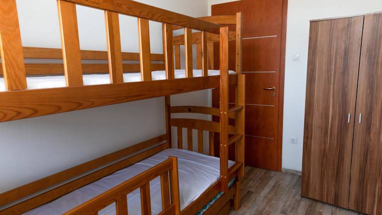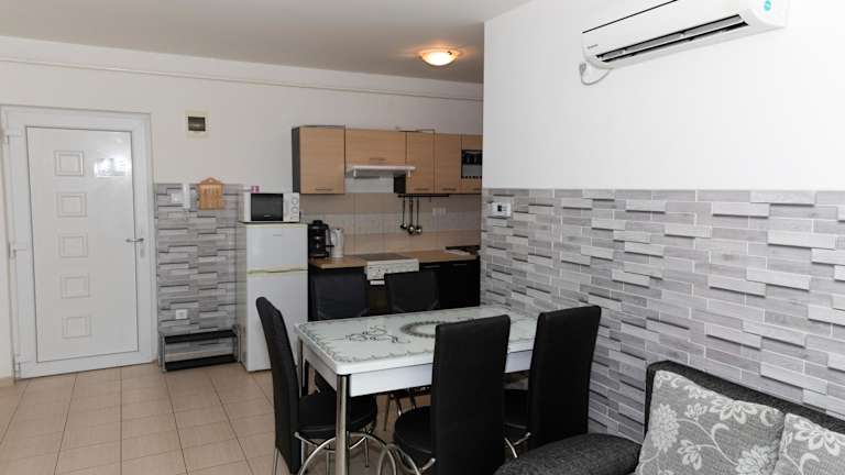 Die Ferienwohnung verfügt über zwei Schlafzimmer und bietet Platz für vier Erwachsene und zwei Kinder unter 14 Jahren. Zur Ausstattung gehören ein Flachbild-TV, Klimaanlage und ein Wohnzimmer. Bettwäsche, Handtücher und Wäsche werden nach den Richtlinien der örtlichen Behörden gewaschen.