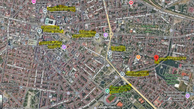 Das Bijoux Apt befindet sich im Herzen von Sofia und bietet eine günstige Lage im Zentrum der Stadt. In der Nähe des Apartments finden Sie viele beliebte Sehenswürdigkeiten wie die Kathedrale Saint Alexandar Nevski, den Bahnhof Vasil Levski und das Theater Ivan Vazov. Der Flughafen Sofia ist ebenfalls leicht erreichbar und nur 4 km entfernt.